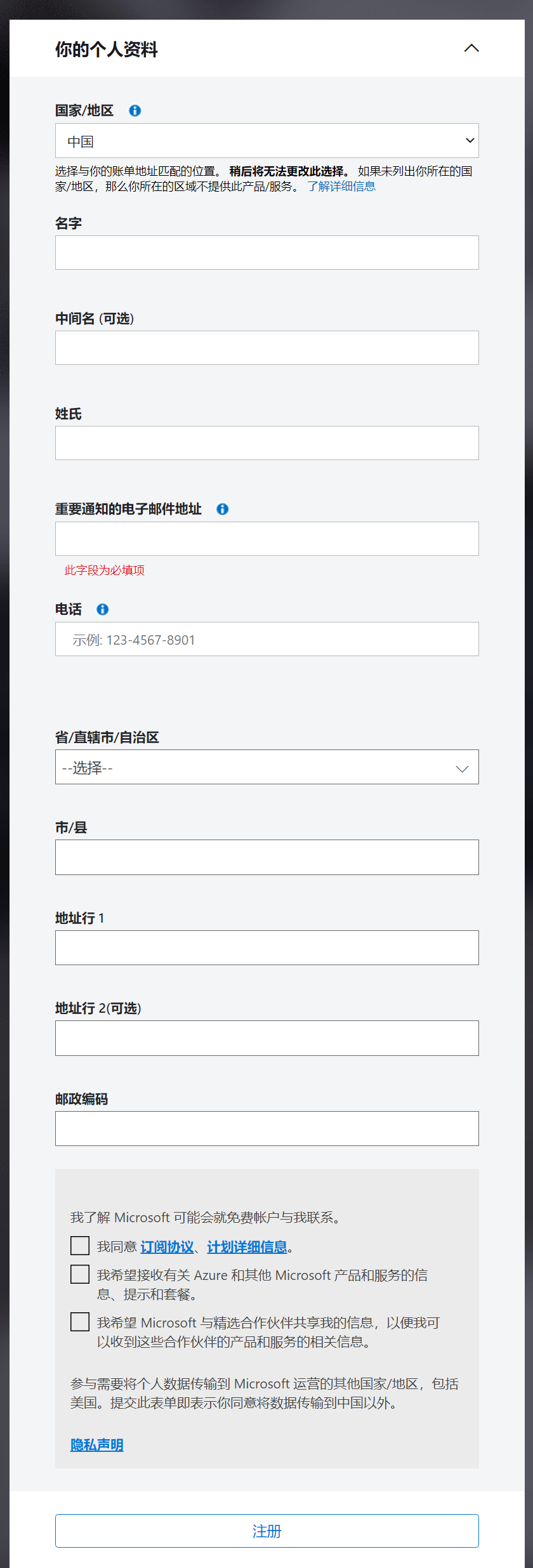 注册时会提示相应资料可能传输至境外,微软作为跨国大型企业,有完善的用户数据保护机制。注册时需要教育邮箱和手机号仅供验证使用,以验证学生身份,同时防止欺诈。