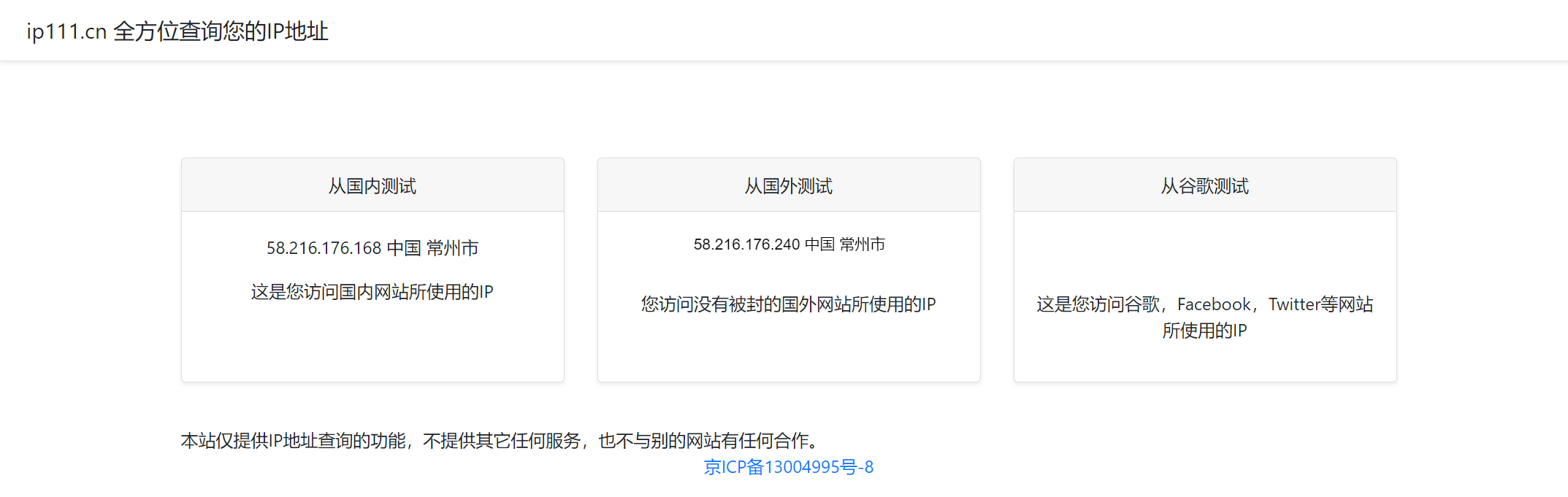 访问此页面检查 IP 是否为国内 IP。如下图所示,如果正确操作,页面上 IP 属地都应该在国内。